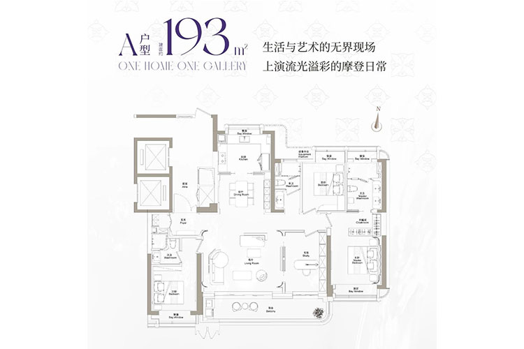1栋29层,共112套,2梯2户每户独立电梯厅,层高3.15米,中间套是155平的3房2厅2卫,边套是193平的4房2厅3卫,均价17万/平,总价2600万-3800万(部分房源2309万起)