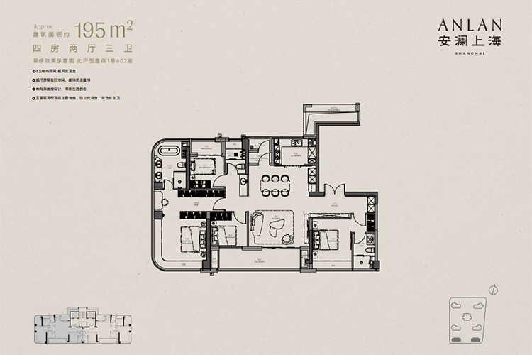 安澜上海由中海地产、招商蛇口、徐汇城投、中旅投资四大国企联合开发,2025年9月以439.5亿创全国涉宅用地总价纪录。是上海首个全地块4米抬板项目,重构"上居下商"立体生活系统,住宅约26万方+商业约3万方+配套8000平米。西地块南北楼间距最大可达约70米,东西双地块各设约5500平会所,约3万方"东安不夜巷"主题商业,立体景观绿化营造"森林溪谷"意境,充满生机与活力的自然生态社区。