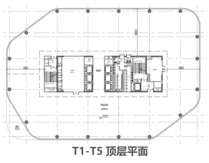 T5:单栋总建筑面积约1.4万平方米,单层建筑面积1930~2050平米,楼层数7 层,净高3.1米,空调 VAV,整层得房率81.5%~85%