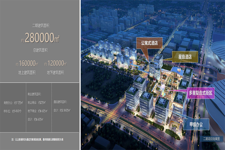 二期由8万方商业MALL、9幢办公塔楼、1幢酒店组成;豪盛上海之眼,是一座集合企业总部办公、商业旗舰、水韵商街、酒店于一体。
