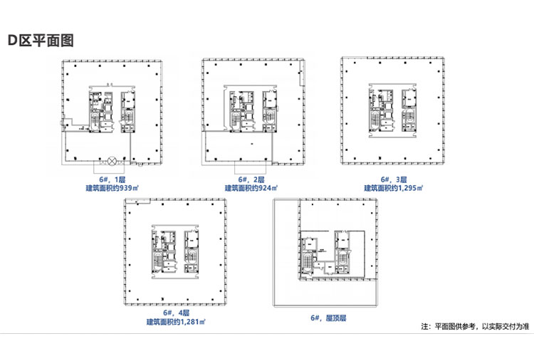 D 区整栋地上面积:4400-6900平米,地下建筑面积:700-1000平米,标准层4.5米,租金3.3元/平方米/天,物业费14元