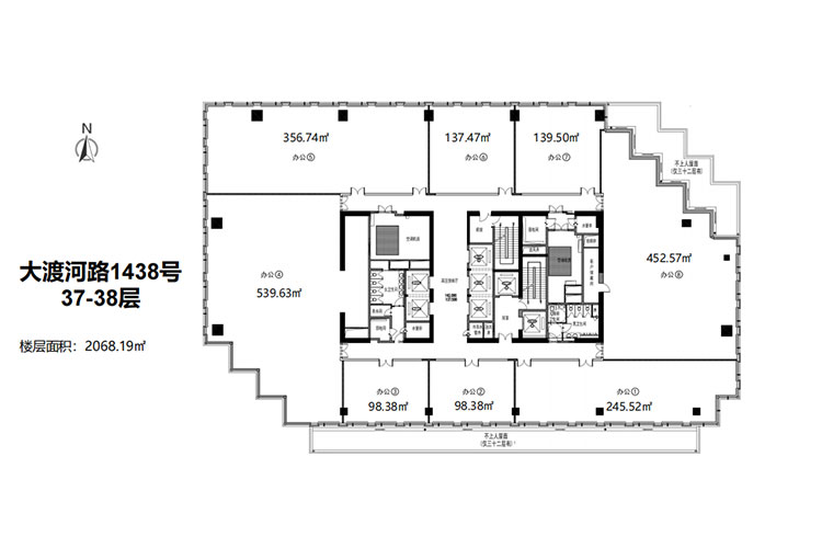 共20层,建筑面积20603平米,大堂层高5.5米(局部挑空10米),标准层层高4米,标准层1001-1449平米,报价4.5万/平米