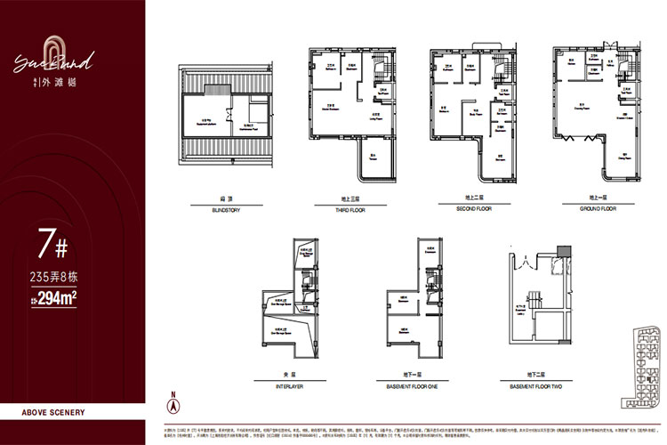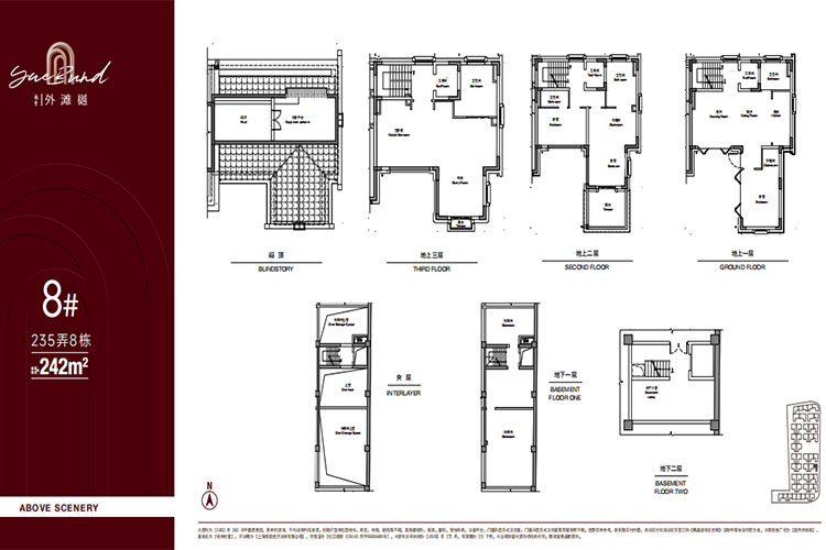 共48套低密风貌别墅(双拼/三拼),地上3层、地下2层,层高3.2-3.9米、地下挑空6.15米,户户带30-80平私家庭院、观景露台。建面约238平、305平、318平、338平米,售价19.5万/平,总价4800-9000万