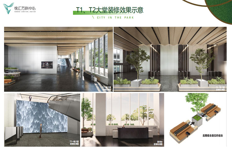 徐汇万科中心由万科、绿地、九龙仓强强联合打造,整个项目分为三期开发。项目为总建筑面积约72万方的POD综合体,包含49万方办公、10万方购物中心、7万方绿轴公园、艺术中心0.4万方。其中三期总建筑面积约50万方,办公建筑面积约28万㎡,T1和T2交付时间暂定2016年3月。