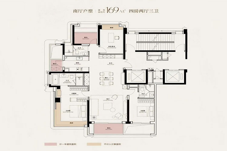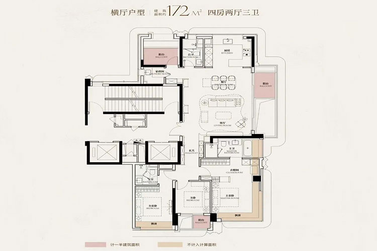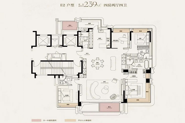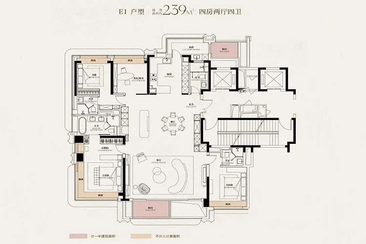5栋24-31层高层住宅,类一梯一户,建筑面积130、166、172、200、240平米,单价14万-19万/平, 总价1850万-3300万区间