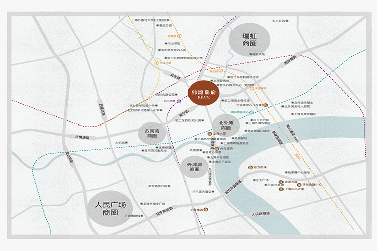 华润外滩瑞府项目位于虹口内环北外滩核心,距外滩-陆家嘴-北外滩“黄金三角”直线约1公里,坐享北外滩“黄金三角” 的发展定位和城市更新红利。从项目步行到黄浦滨江,左手历史风貌,右手浦西新地标,地段含金量肉眼可见。周边南京东路-外滩商圈、人民广场商圈、苏河湾商圈、北外滩商圈、瑞虹商圈环绕叠加,商业版图鼎盛,璀璨永不落幕
