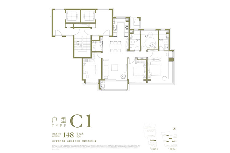 总高12、13、14、17层的小高层,部分类1梯1户,全明电梯厅设计,建筑面积104平3房,148平、148平4房,均价12万/平,总价1150万起