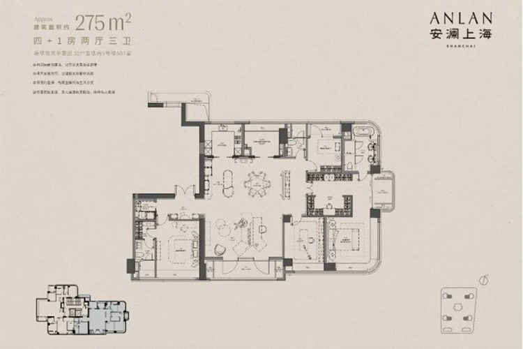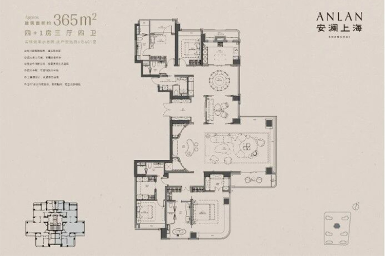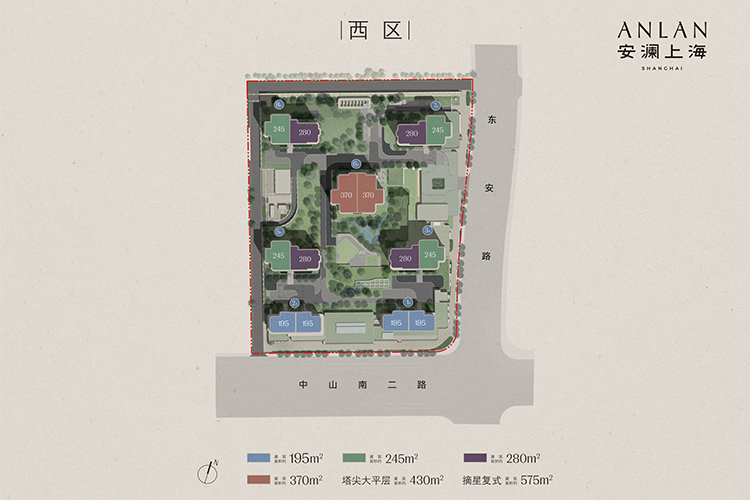 安澜上海由中海地产、招商蛇口、徐汇城投、中旅投资四大国企联合开发,2025年9月以439.5亿创全国涉宅用地总价纪录。是上海首个全地块4米抬板项目,重构"上居下商"立体生活系统,住宅约26万方+商业约3万方+配套8000平米。西地块南北楼间距最大可达约70米,东西双地块各设约5500平会所,约3万方"东安不夜巷"主题商业,立体景观绿化营造"森林溪谷"意境,充满生机与活力的自然生态社区。