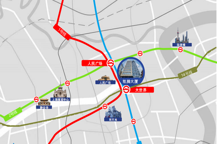 凯腾大厦位于上海黄浦区核心商圈,地处人民广场、大世界商圈,属上海内环核心,毗邻南京路步行街、淮海中路、外滩、新天地;周边有来福士、K11、恒基名人等高端商场。人流密集、商业氛围成熟,属上海公认的商业价值高地;该区域内万方级独栋物业极为稀缺,满足商务办公及休闲购物需求。