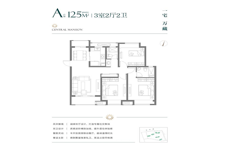 总高18-29 层,户型面积60平(一房两厅一卫)、90平(两房两厅一卫)、125平(三房两厅两卫),单价11.8万/平,总价650-1500万