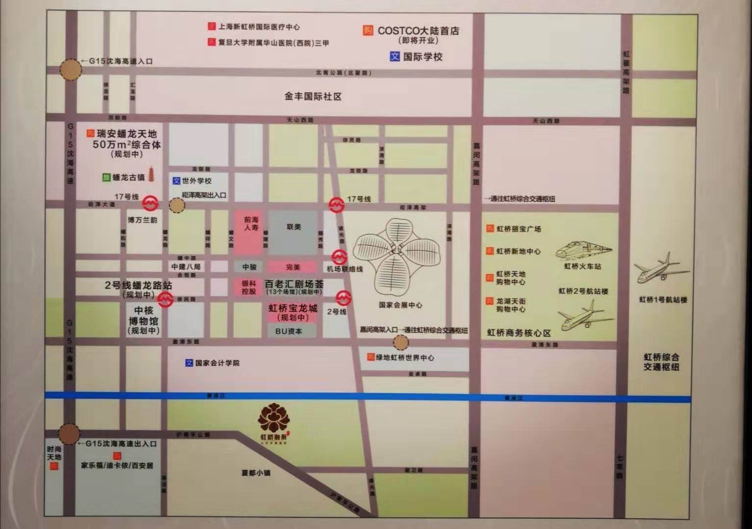 一、区域:虹桥融景位于大虹桥商务区,南至沪青平公路,西至向阳河,北至徐泾港。直线距离国家会展仅约1000米,是距离国家会展近的在售楼盘。隔路相望便是虹桥别墅区的精致15万方商业一夏都小镇,多家文艺餐饮、亲子教育以及五星美利亚酒店,宛若一座欧洲小镇,搭配虹桥别墅区的惬意氛围。而在不远处,虹桥天地、龙湖天街、虹桥世界、虹桥百脑汇、瑞安集团打造的蟠龙天地等大型商业,驾车几分钟即可到达。项目三期还将建设全新会所,泳池,健身房等设施应有尽有。虹桥已升级为上海主城区,未来的发展好