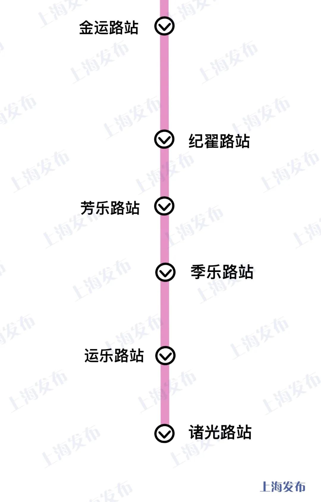 该工程沿线共设5座车站,在纪翟路路口东侧设置纪翟路站、在芳乐路路口设置芳乐路站、在季乐路路口设置季乐路站、在诸光路地道东侧、运乐路路口东南侧地块内设运乐路站、在崧泽大道南侧设置诸光路站。