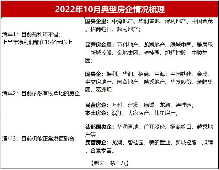 ——那么,基本可以得出,目前 "2022 年四季度可以信赖的房企白名单"如下: