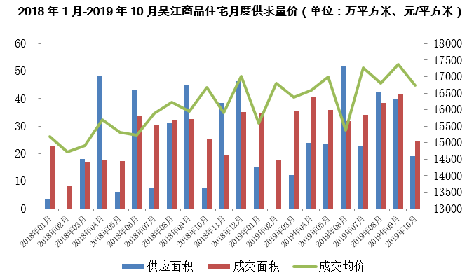 2019年3月份,苏州市场显著升温,吴江区市场也迅速转暖,成交量升至高位。不过,在苏州连番升级调控之后,吴江区市场明显降温,10月份成交量创年内第二低点。因购房门槛抬高,投资性需求被有效抑制,多数项目出现蓄客不足的情况,新开盘项目平均去化率由高峰期的94%降至现阶段的70%。