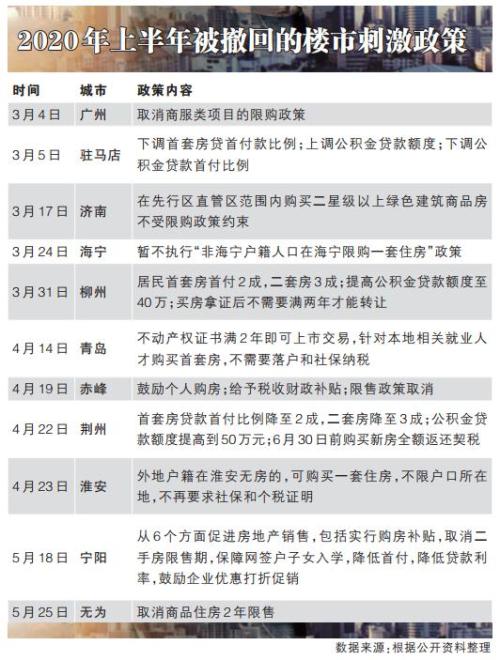 楼市政策方面,受疫情影响,地方经济和财政收入承受巨大压力,一些地方政府试图通过放松限购、降低首付等政策刺激楼市,均被迅速叫停。据统计,上半年有13个城市放松调控政策被迫撤回,反映出调控的底线不可触碰。